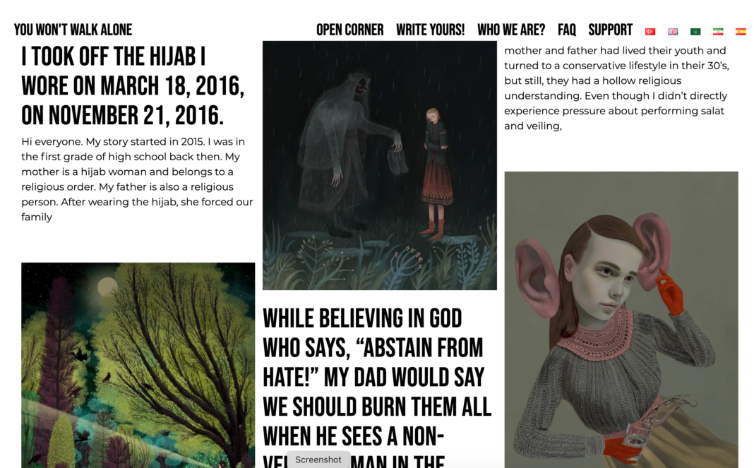 Fondé en 2018 par cinq femmes de 23 à 28 ans voilées ou anciennement voilées, le site turc Yalnızyürümeyeceksin (« Tu ne marcheras pas seule ») publie les témoignages de jeunes femmes qui souhaitent se découvrir la tête mais n’osent en parler à personne. Toutes les lettres racontent plus ou moins la même histoire : des filles voilées dès leur plus jeune âge qui, à l’adolescence, veulent suivre un chemin loin des pressions parentales. Sur Snapchat, Instagram, Twitter, toutes découvrent la vie des autres filles de leur âge. Beaucoup se créent une identité virtuelle pour exister comme elles le voudraient.