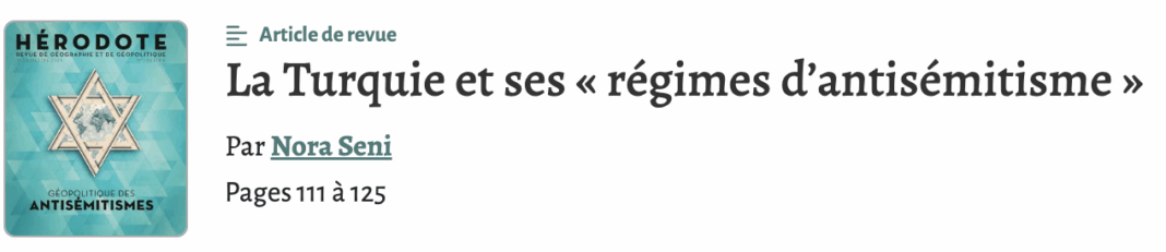 De toute façon, avec ou sans l’invitation de professeurs juifs allemands, le mythe d’une Turquie salvatrice des Juifs résiste. Mais n’est-ce pas le propre des mythes que de survivre au réel ? Dans ce cas précis, une autre raison favorise la permanence de cette légende : la Turquie compte sur la communauté juive pour témoigner de « l’hospitalité » dont elle a bénéficié et faire obstacle à l’accusation de génocide des Arméniens [Seni, 2016].
